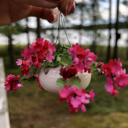 Torstain livekurssilla teemme Kati Rauhaniemen opastuksella pelargoniamppelin tai ikkunaruukun. Kurssi pidetään kaupunkikirjasto Oodissa, Töölönlahdenkatu 4, 00100 Helsingissä. Kurssin opetusmaksu 10 euroa, tarvikepaketti 10 euroa. Kurssille mahtuu 12 osallistujaa. Ilmoittautumiset materiaalien tilaamisen takia jo ma 9.2. mennessä ilmoittautumiset @ nukkekotiharrastajat.fi. Tarkemmat ohjeet lähetetään osallistujille ilmoittautumisen jälkeen. Kuvassa Liisa Haukijärven tekemä amppeli.