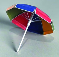 Materiaalit: n. 150 x 250 x 50 mm tukeva pahvilaatikko tai pitsalaatikkopahvia, n. 120 x170 x 50 mm kannellinen läpinäkyvä muovirasia, kaakeliprinttejä tai mosaiikkipaloja tms. allastason päällystämiseen ja altaan sisäverhoiluun, 3 mm:n alumiinilankaa tms. tikkaisiin. Lisäksi eriväristä softismassaa rantapallojen ja ilmapatjan tekoon sekä valkoisia suodatinpusseja tai kuitukangasta, ohutta rautalankaa, grillitikku ja ontto tikkarin tikku tms. aurinkovarjon tekoon.