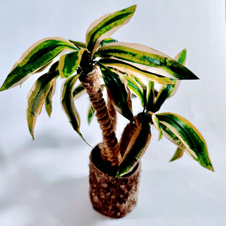 Materiaalit: ohutta rautalankaa, maalarinteippiä, isoja ruukkuja tai kukka-altaita, ilma kuivuvaa massaa tueksi ruukkuihin, kuivattuja kahvinporoja ruukkujen pinnalle, juuttinarua runkoihin
