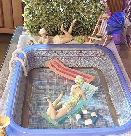 Kevään viimeisellä lauantaikurssilla tehdään nukketalon pihalle pieni uima-allas rekvisiittoineen. Jos aikaa jää, tehdään myös aurinkovarjo.